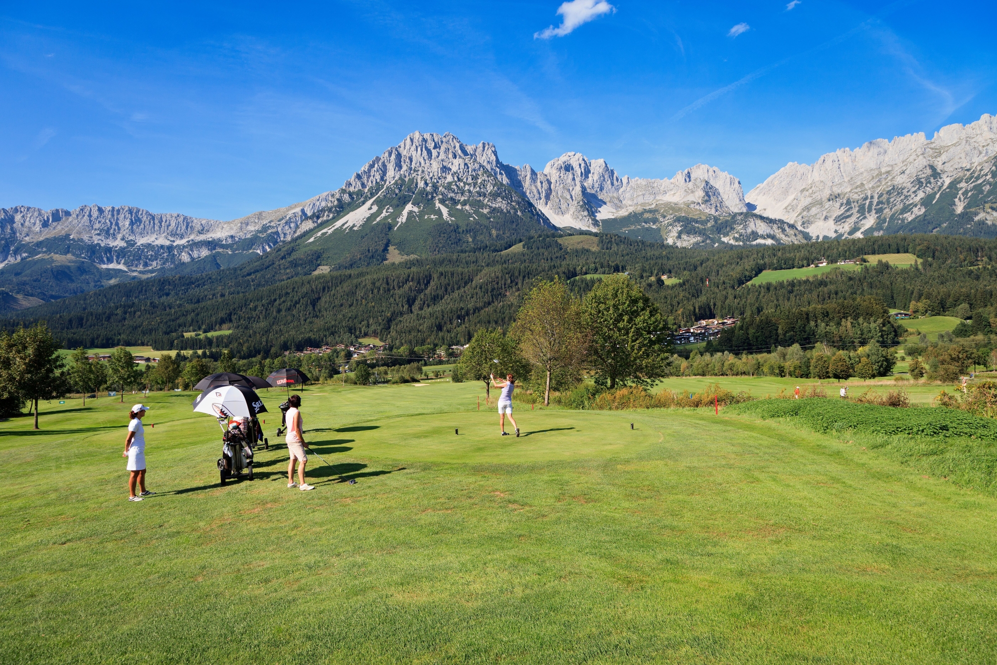 Ob Beginners oder erfahrene Golfer - Golfen wird vor der Kulisse des Naturkinos Dolomiten im ***** Mirabell Dolomites Hotel mit Golfclub im Herzen von Südtirols grünem Tal zur schönsten Sportart der Welt.