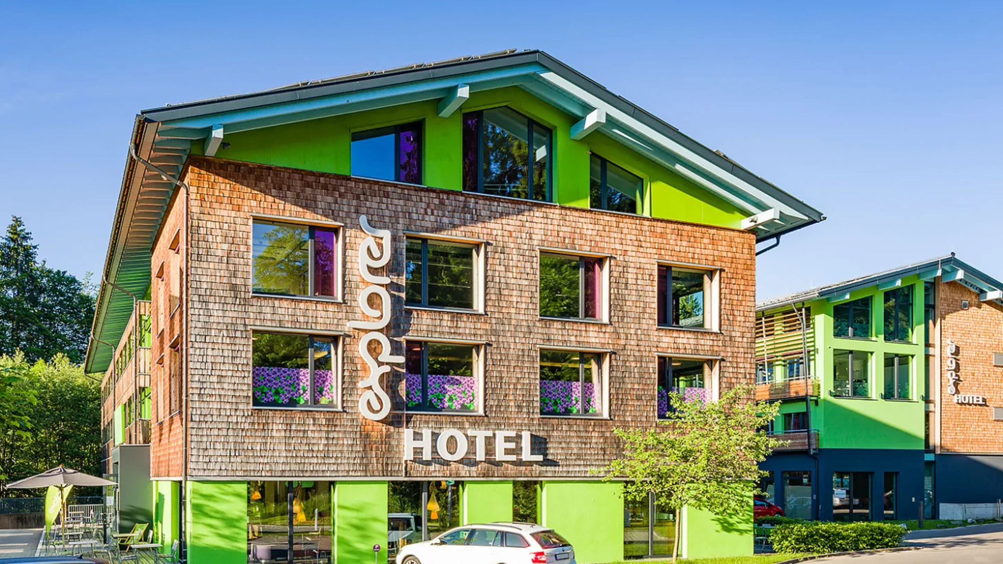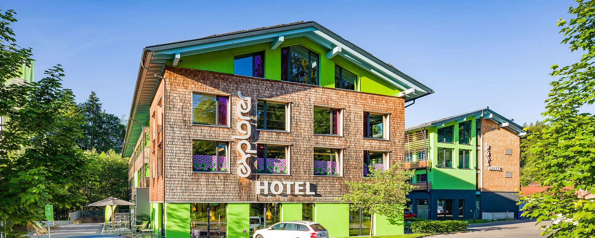 Oberstdorf hat einen eigenen Bahnhof und für Übernachtungsgäste des Ortes ist die Fahrt mit dem Linienbus am Tag der Anreise kostenfrei. Im Hotel bekommt man dann die Allgäu Walser Premium Card, mit der man vielen kostenlose und ermäßigte Leistungen in Anspruch nehmen kann. Das Explorer Hotel bietet sich vor allem für sportlicher Urlauber an, die ein Basislager für ihren Aktivurlaub in den Allgäuer Alpen suchen. Perfekt: Das Haus ist das erste Passivhaus Hotel in Europa und sehr nachhaltig gebaut, hier kann man klimaneutral und modern übernachten.