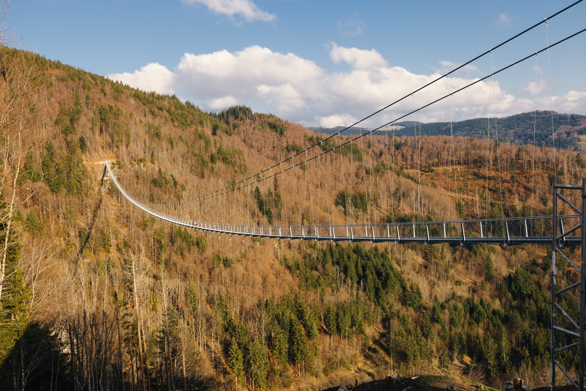 Die Eberhardt Bewehrungsbau GmbH aus dem schwäbischen Riedlingen hat in das Großprojekt rund fünf Millionen Euro investiert und wird nun auch den Betrieb der Brücke übernehmen. Das Unternehmen hat bereits in Bad Wildbad im Nordschwarzwald eine 380 Meter lange Hängebrücke gebaut, die als Erfolgsmodell gilt. Nun steht das erste Projekt im Hochschwarzwald vor der Eröffnung.