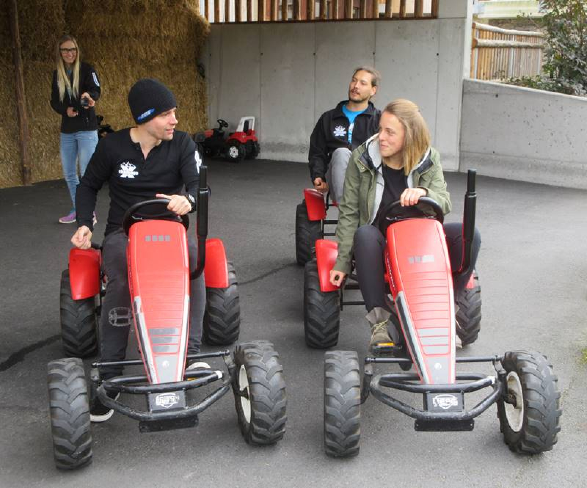 Zwei Highlights gibt es dann noch zum Schluss vor allem für die Kleinen. Im Heustadl des Schaubauernhofs toben sich die Kids beim Heuhüpfen aus. Anlauf nehmen, losspringen und im fein gepolsterten Heuhaufen landen. Und wer schon immer mal wissen wollte, wie es sich auf einem Traktor sitzt – dafür gibt es einen eigens angelegten Parcours für Minitraktoren. Das Schneehoehen.de x-challenge Team hat die Chance beim Schopf gepackt und das Herumkurven als "Warm-up" für ihre erste x-challenge am Easy Trail in Mayrhofen genutzt.