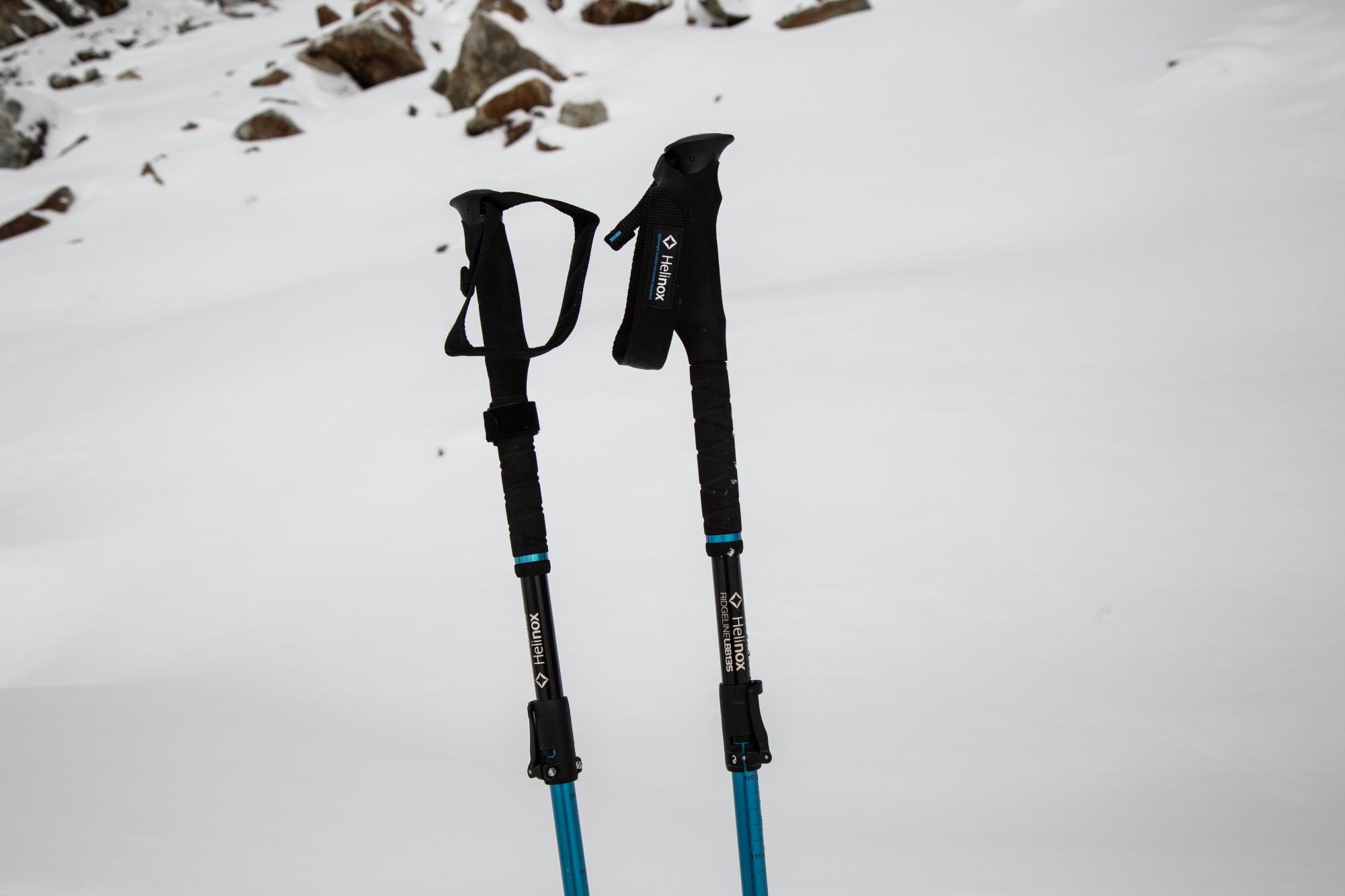 Die Helinox Ridgeline LBB135 zeigten sich auf unserer Gletschertour in Tirol und den Wandertouren in den hessischen Mittelgebirgen als verlässlicher Begleiter. Zwar sind sie zwar nicht die leichtesten Stöcke am Markt (knapp 240 Gramm pro Stock), können dafür aber mit einer hoher Belastungsfähigkeit und einem leichten Handling überzeugen.