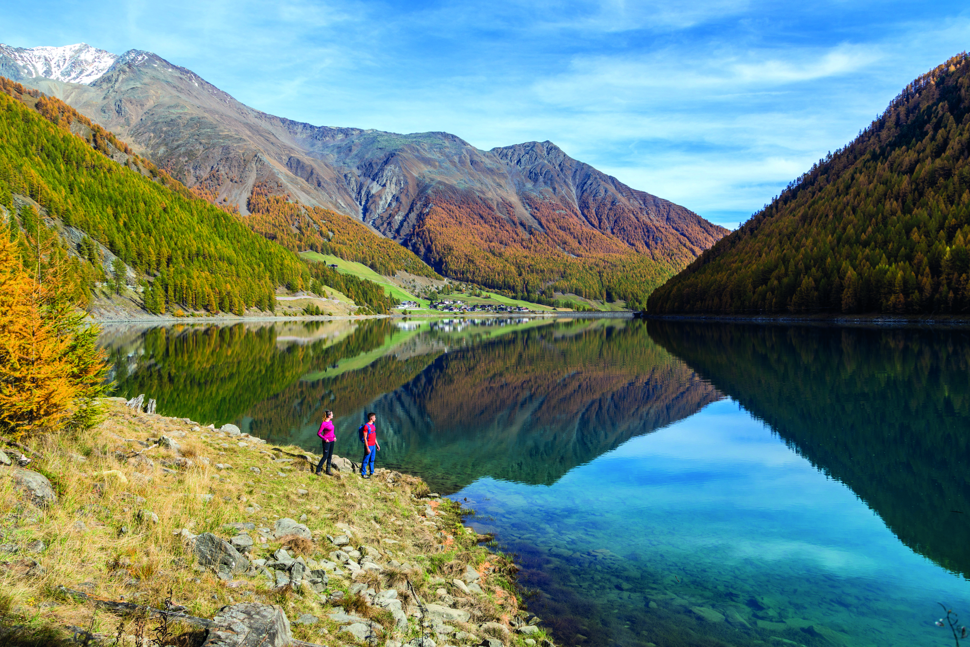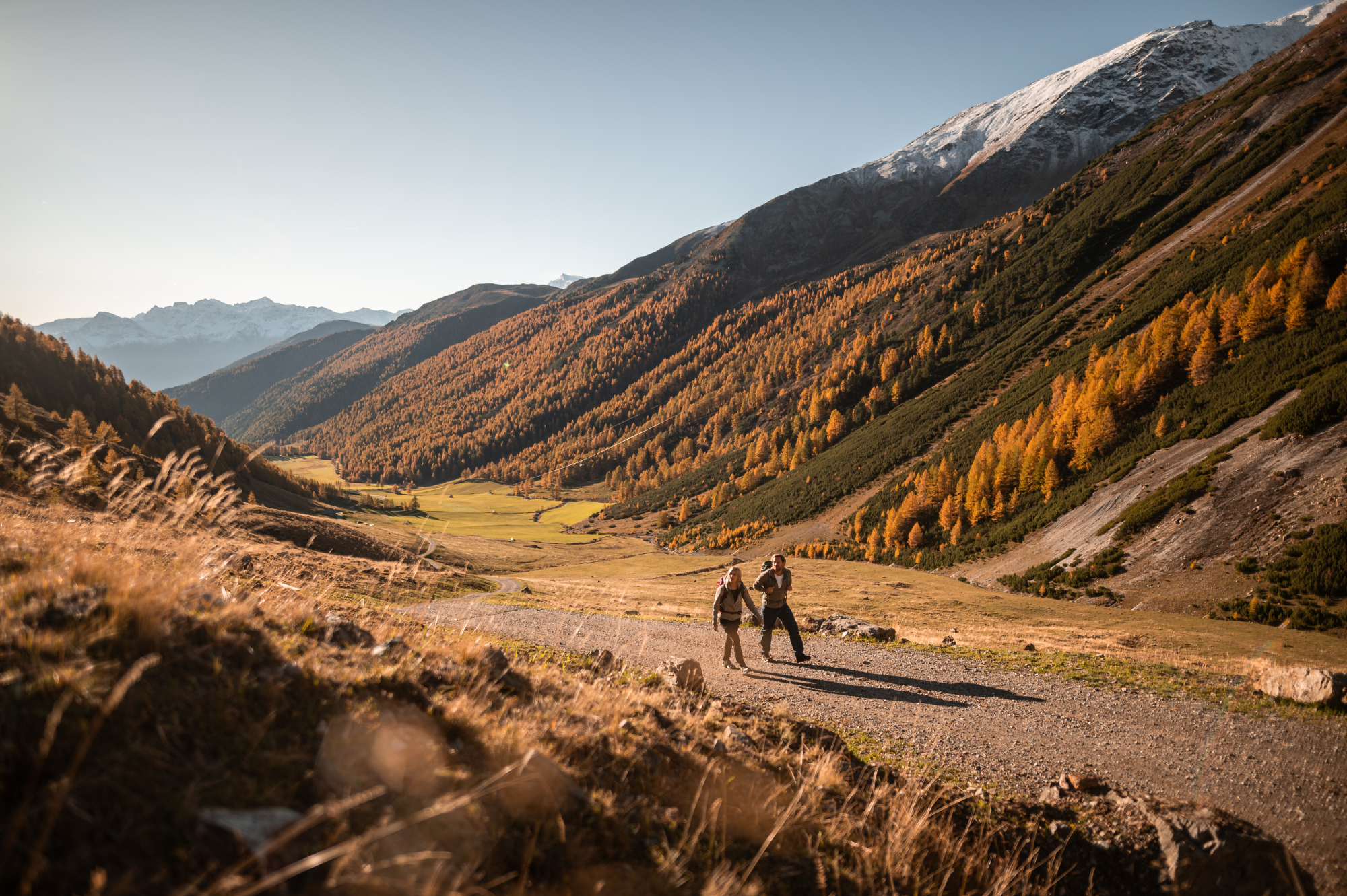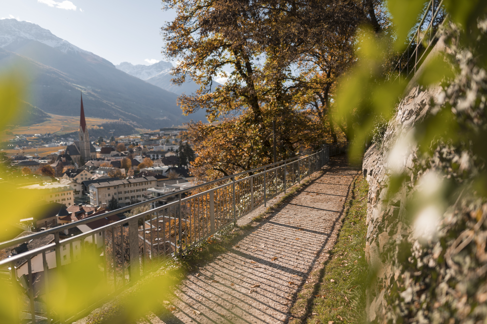 Die Südtiroler Region Vinschgau ist vielfältig und bietet herbstliche Erlebnisse für die ganze Familie. Der Vinschgau erstreckt sich über 80 Kilometer vom Reschenpass, an der Staatsgrenze zu Österreich, bis nach Juval am Eingang des Schnalstals. Das Tal wird von verschiedenen Gebirgsketten, wie den Ötztaler Alpen oder der Ortler-Gruppe, umschlossen.