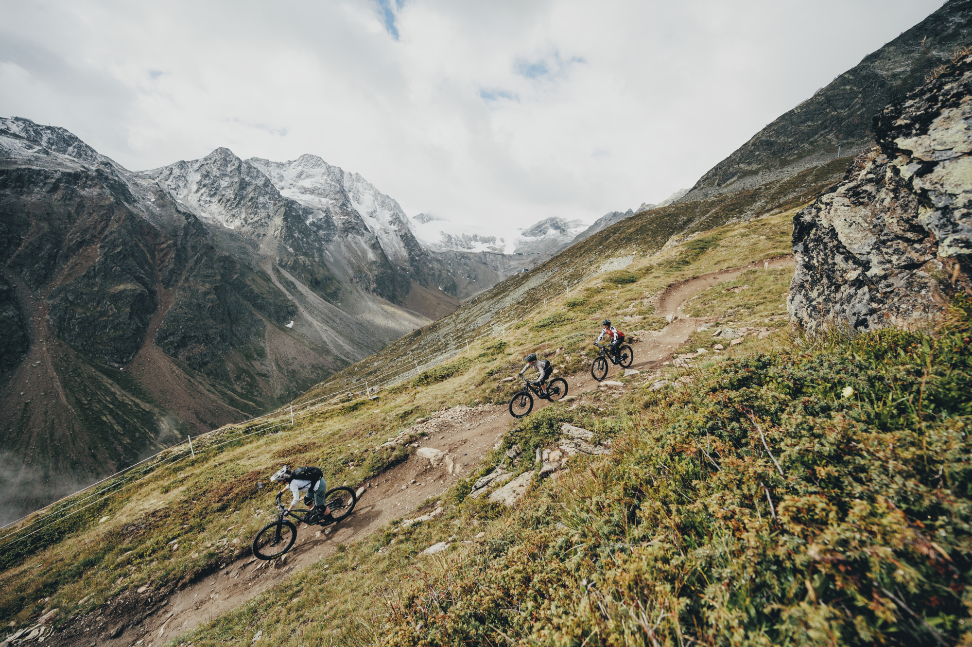 Doch natürlich finden auch die Strampler, die Tourenfahrer, die Ausdauersportler unter den Mountainbikern in Sölden und dem Ötztal zahlreiche lohnenswerte Touren. So zum Beispiel die Gletscherrunde, die euch bis auf 2700 Meter Höhe bringt und mit flowigen Abfahrten belohnt - nachdem ihr etwa 1500 Höhenmeter bergauf hinter euch gebracht habt. An die 20 ausgeschilderte MTB-Routen gibt es in der Bikerepublic - der Fokus der Region liegt aber ganz klar auf den Liebhabern von Downhill, Enduro und flowigen Trails.