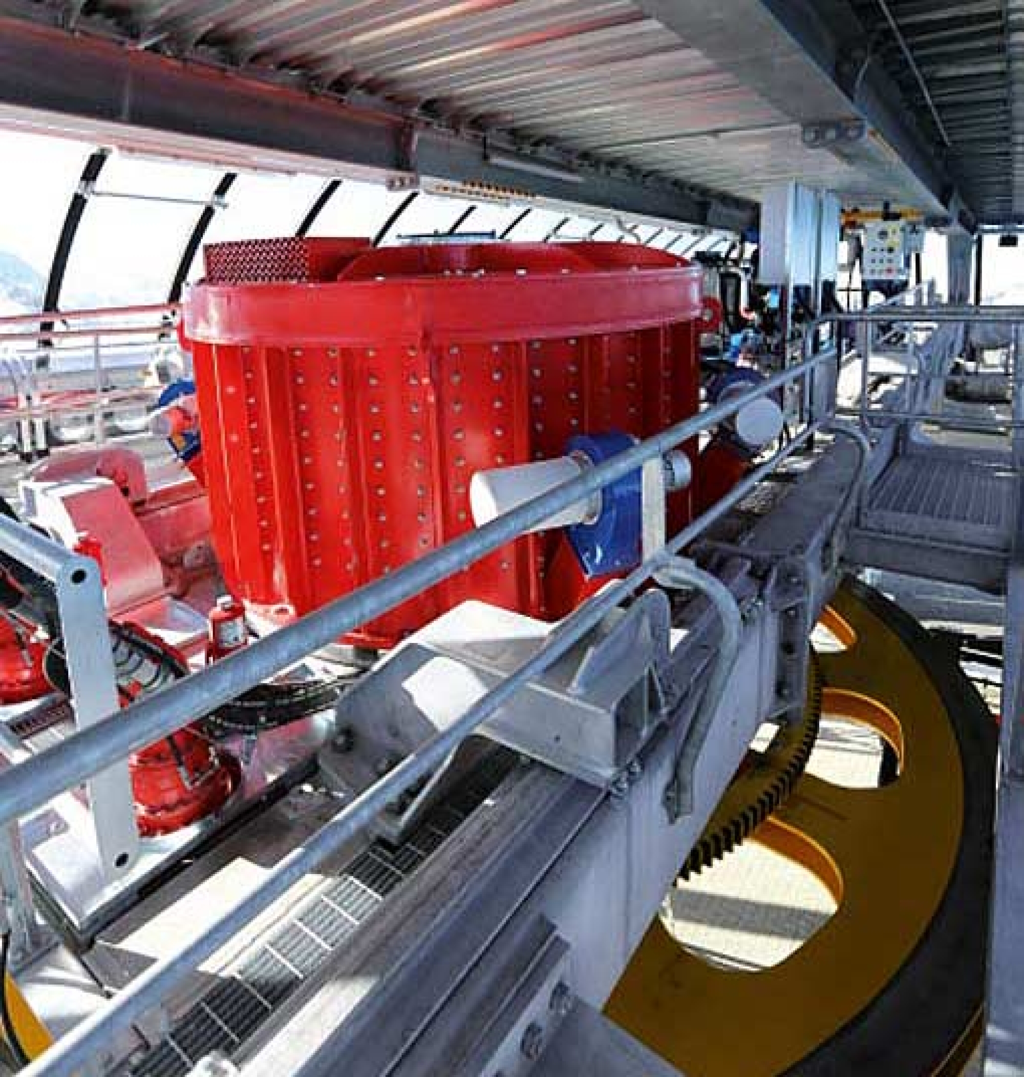 Unsere Anlagen sind zum größten Teil aus Stahl hergestellt, so dass die Komponenten problemlos recycelt werden können. Der größte Faktor in Bezug auf den ökologischen Fußabdruck ist der Energieverbrauch. Durch die Reduktion der Verlustleistung durch den getriebelosen Antrieb und den Einsatz von Seilführungsrollen mit sehr geringem Rollwiderstand reduzieren wir den Energieverlust, was sich sehr stark auf die Optimierung, das heißt auf die Reduktion des ökologischen Fußabdrucks auswirkt. Dass wir bei der Produktion unserer Komponenten alle Verfahren nach dem neuesten Stand der Umwelttechnik anwenden, versteht sich von selbst.