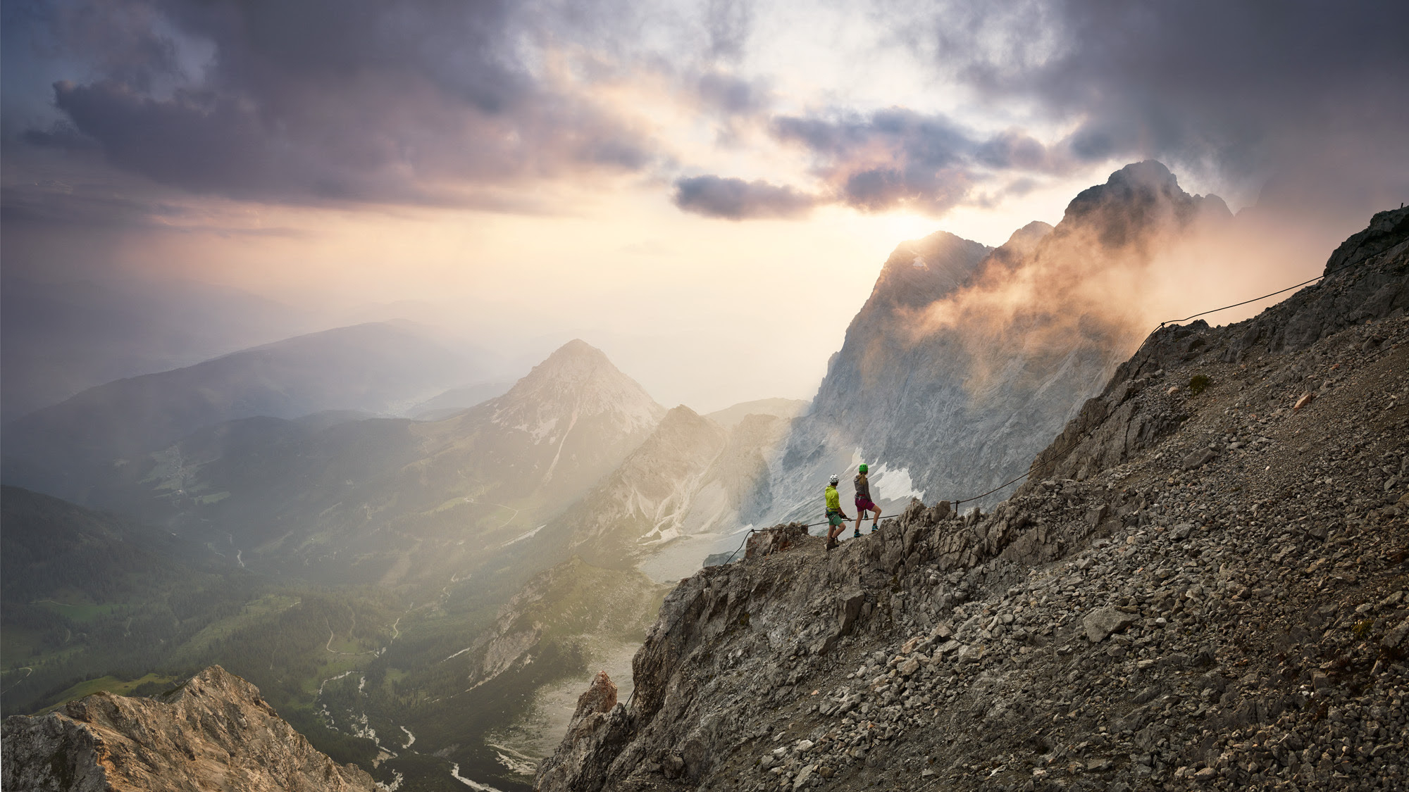 Vor der Kulisse der majestätischen Dachsteinsüdwand erstreckt sich auf einer Höhe von 1.000 bis 3.000 Metern ein wahres Klettereldorado.