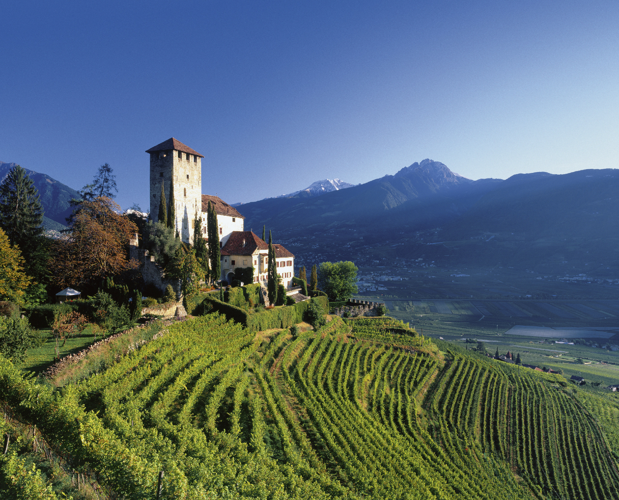Schloss Trauttmansdorff liegt am Rand der Stadt Meran und ist vor allem wegen seiner Gärten bekannt. Die 12 Hektar großen "Gärten von Schloss Trauttmansdorff" zeigen in über 80 Gartenlandschaften verschiedenste Pflanzen aus aller Welt. 7 km Wege führen durch die Gärten, die 2001 eröffnet wurden und neben der Botanik auch Künstlerpavillons, Erlebnisstationen und wechselnde temporäre Ausstellungen beinhalten.