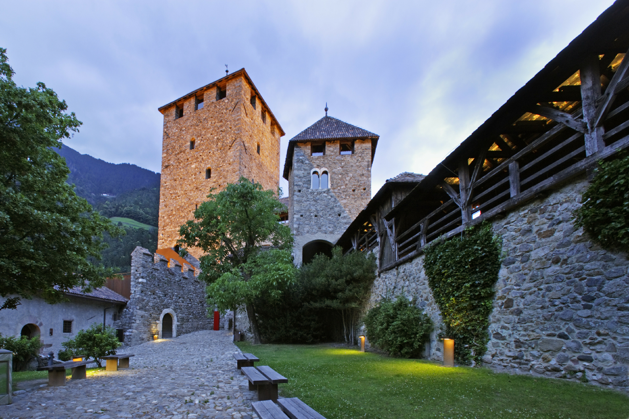 Das Schloss Tirol ist die ehemalige Stammburg der Grafen von Tirol und war bis ins 15. Jahrhundert die Residenz der Landesfürsten. Das Schloss liegt auf einem Moränenhügel, der bereits in der Urzeit besiedelt war, davon zeugen viele Funde wie die Überreste dreier, übereinanderliegender Kirchen, die bei Ausgrabungen gefunden wurden. Die erste Burg wurde dann um das Jahr 1100 errichtet, weitere Bauphasen um 1140 und in der zweiten Hälfte des 13. Jahrhunderts erweiterten die Burg. Nach dem Umzug der Fürsten nach Innsbruck verfielen Teile des Baus, er sollte sogar als Steinbruch genutzt werden, dann wurde das Schloss jedoch im neugotischen Stil wiederaufgebaut. Zu den ältesten Teilen, die heute noch erhalten sind, zählt die Ringmauer aus der ersten Bauphase.