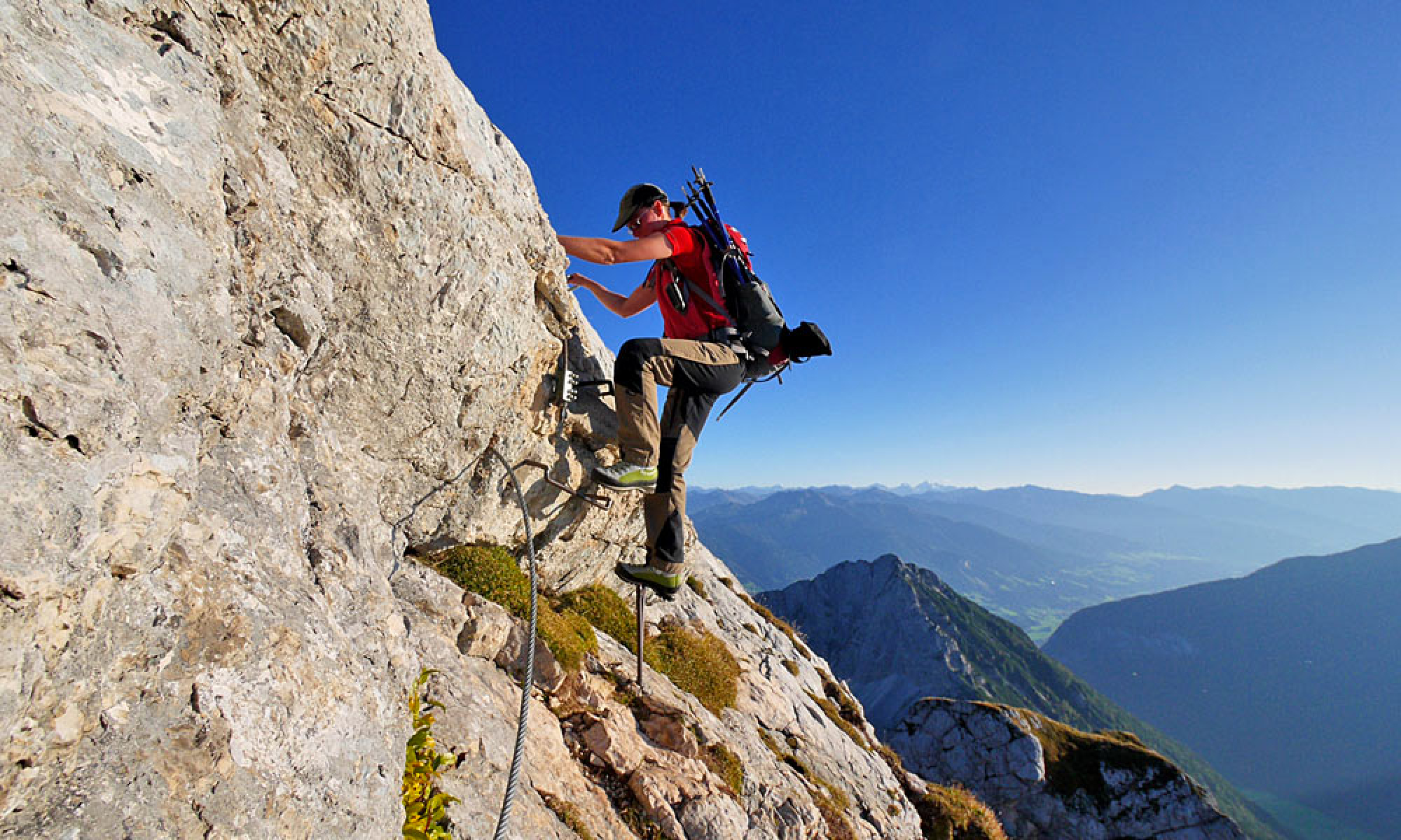 Klettersteiggehen ist eine beliebte Sommersportart in den Bergen. Wer körperlich fit ist, Trittsicherheit und Schwindelfreiheit besitzt sowie die entsprechende Ausrüstung (Klettersteigset, Klettergurt, Helm, feses Schuhwerk) und das Know-How (Verhalten im Klettersteig, Tourenplanung) besitzt, der kann beim "Eisenklettern" viel Spaß haben.