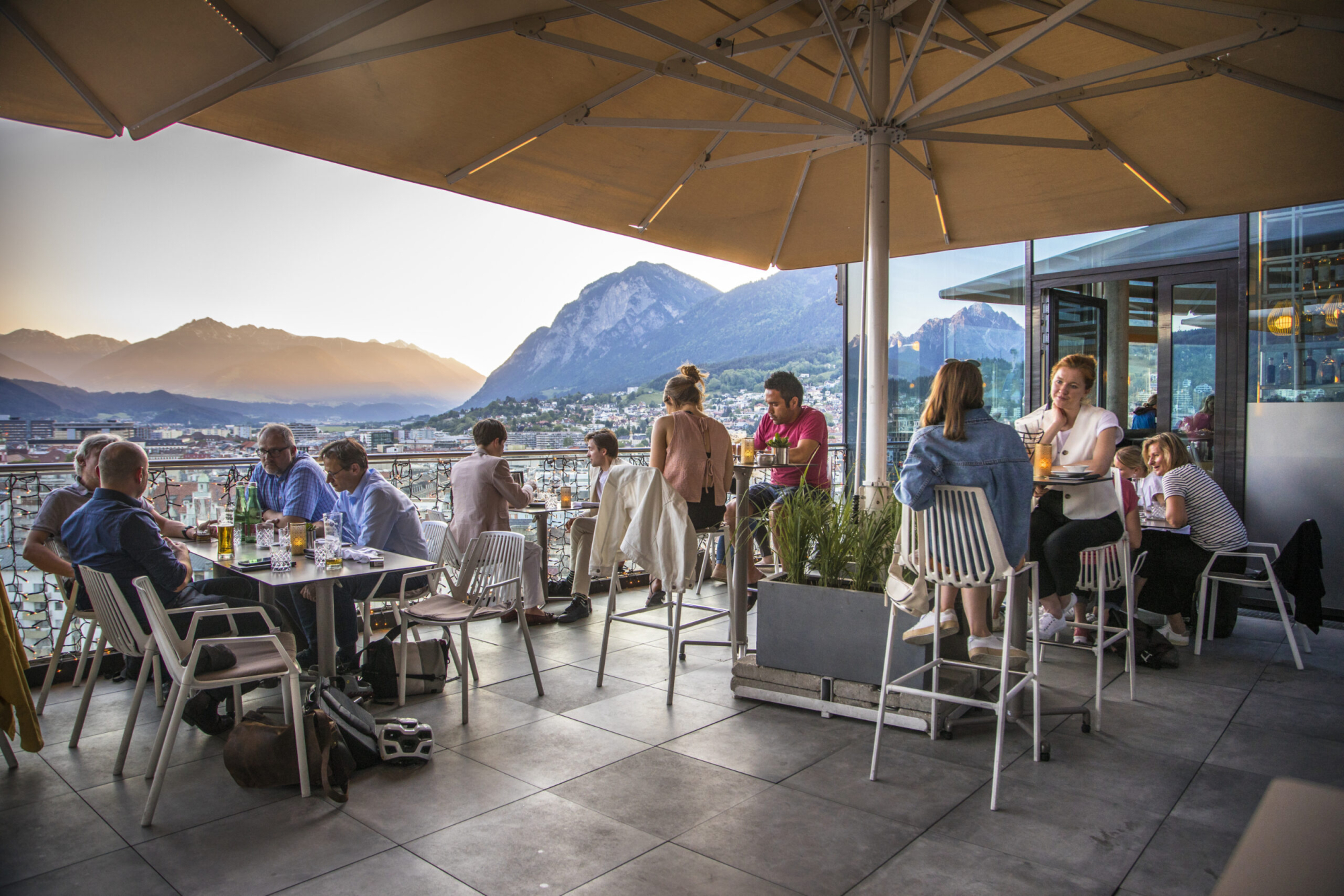 Genießen lässt sich der Sommer der Vielfalt in Innsbruck auch gastronomisch: Traditionell und bodenständig speist man etwa im Gasthaus Goldenes Dachl oder im Anich. Modern und edel präsentieren sich das Lichtblick samt angeschlossener Bar mit 360-Grad-Aussicht oder das Il Convento. Doch auch stadtauswärts liefert die Region ein kulinarisches Verwöhnprogramm, gespickt mit Erlebnishighlights: Wie wäre es mit einem Frühstück in der Gourmet-Gondel am Patscherkofel mit Traumaussicht, mit einem Coffee-to-Blow bei Mario auf der Hungerburg, wo Kaffeejunkies den Espresso aus dem selbst-geblasenen Glas schlürfen, oder am Genuss-Radweg entlang heimische Beeren, Käse und Edelbrände zu verkosten? Und nicht vergessen: Ohne Alm kein Innsbruck-Urlaub! Mindestens eine Einkehr bei einer der unzähligen Almen inklusive Brettljause und Kaiserschmarrn ist Pflicht. Abends findet man sich dann wiederum müde, aber glücklich beim Sundowner in einer Rooftop-Bar – die Sonne verschwindet langsam hinter den Bergspitzen und man atmet einfach nur ein … und aus.