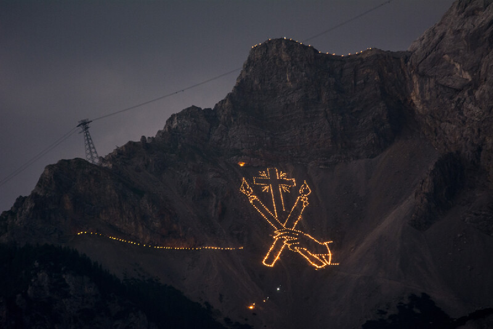 Wenn am 19. Juni mit Beginn der Dämmerung überall auf den Berghängen rund um die Tiroler Zugspitz Arena die Bergfeuer entzündet werden, dann beginnt für Einheimische und Gäste eine magische Nacht. Für „Bergfeurer“ Thomas Koch und seine Truppe hingegen bedeuten die erleuchteten Hänge das Ende monatelanger Arbeit. Seit dem Frühjahr haben sie ihre Motive geplant und abgesteckt, die Arbeitsabfolge geprobt und sind schließlich unter vollem körperlichem Einsatz in der Dunkelheit über die teils extrem steilen Abhänge geklettert, um die Feuerschalen zu entzünden. „Es ist ein großer Aufwand und viel Arbeit, aber wir alle lieben diese Nacht und die Vorbereitungen“, so Koch.