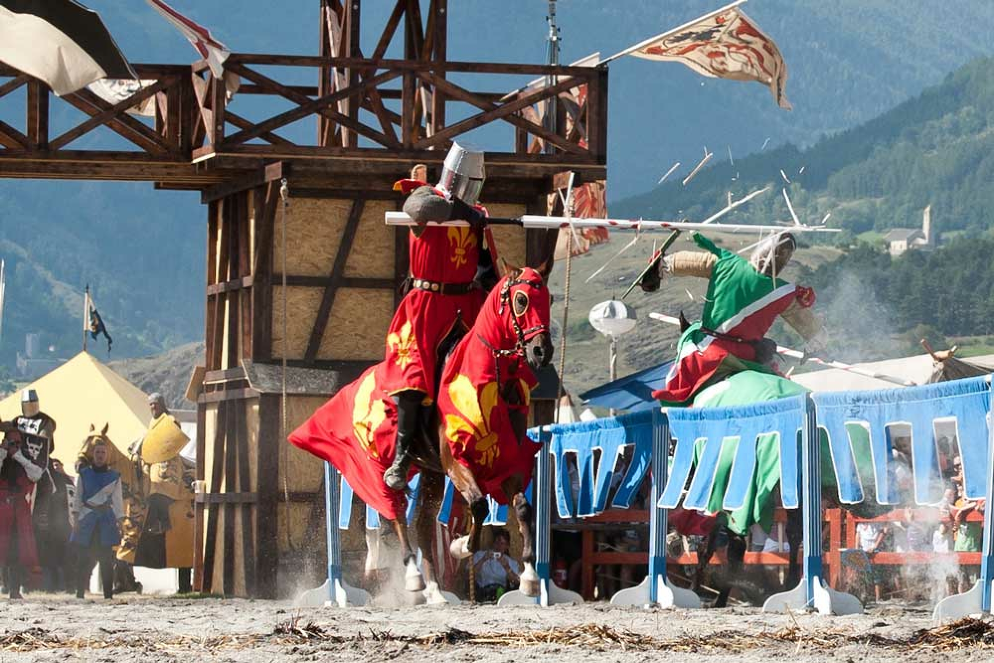 Ein Höhepunkt der Ritterspiele sind die Ritterturniere und Kämpfe, die während der drei Tage täglich stattfinden. So gibt es das Ritterturnier "Kampf um die Churburg", den Überfall der Landsknechte, die Nachstellung der Calvenschlacht 1499 und die Vollkontakt-Kämpfe, bei denen sich Kämpfer aus ganz Europa in der Arena stellen.