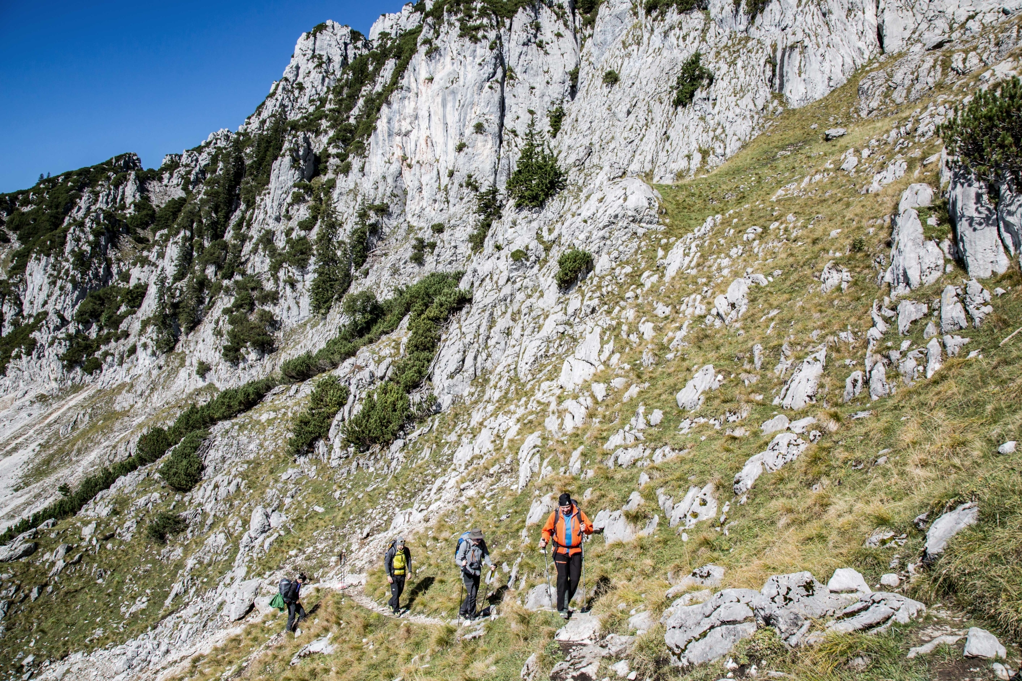 Richtig eingesetzt können Trekkingstöcke auf ausgesetzten Pfaden auch eine gewisse Sicherheit verleihen, da man sich seitlich abstützen kann.