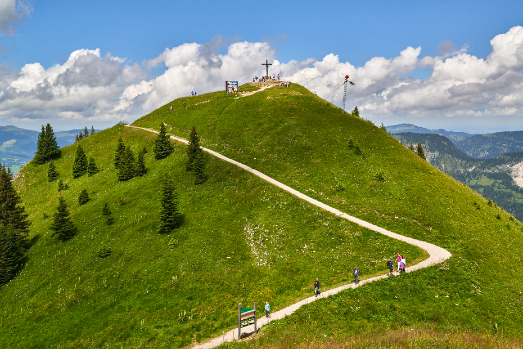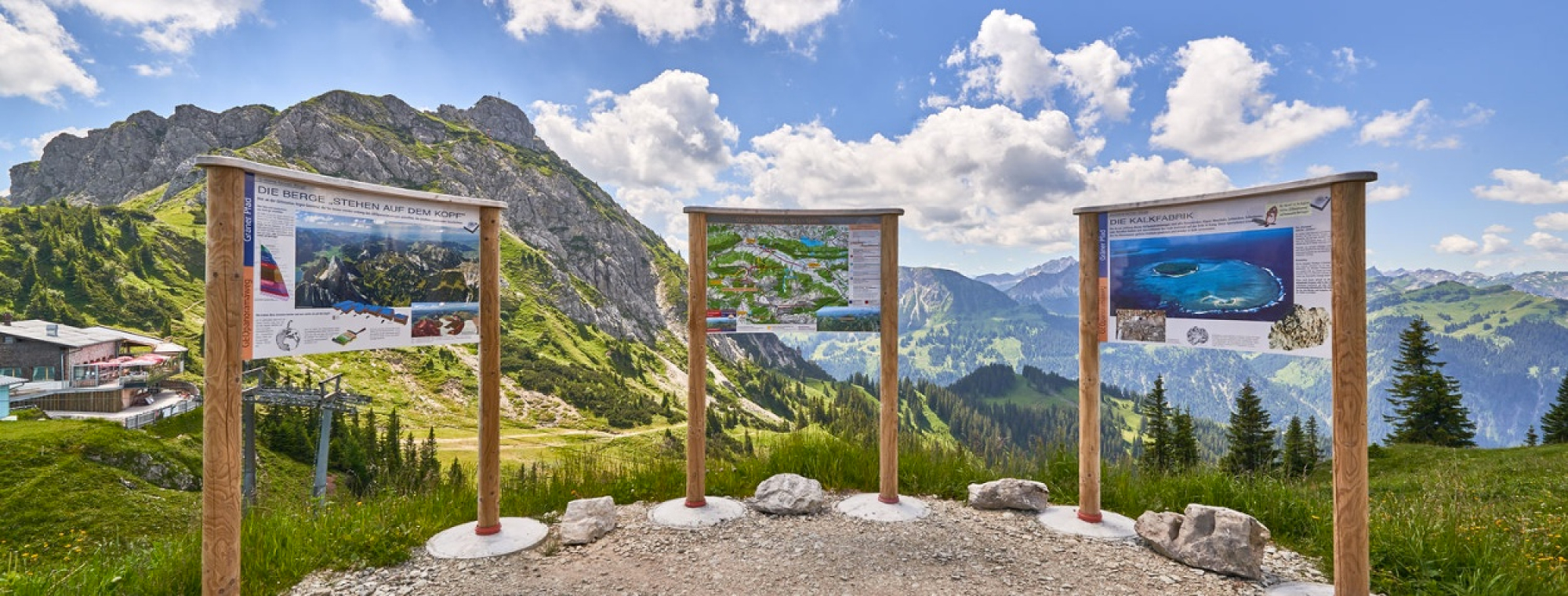 In 1.862 Metern Höhe steigt man am Neunerköpfle aus der Bergbahn. Hier kann man unter anderem auf dem 9-Erlebnisweg mit zwölf interaktiven Stationen oder auf der Drei-Seen-Tour mit Blick auf die Bergseen Lache, Traualpsee und Vilsalpsee wandern. Außerdem wartet hier oben neben dem größten Gipfelbuch der Alpen auch der Fotopoint "Familienherz".