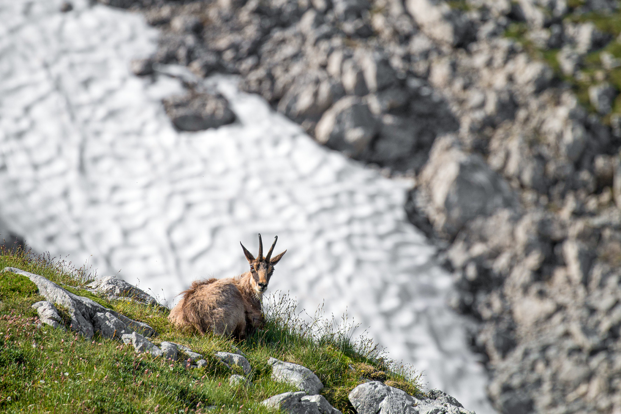 Die ersten 3,5 km liefen wir über abwechslungsreiches und schroffes Gehgelände mit einem Höhenunterschied von +- 100 Meter erst einmal ganz entspannt "geradeaus". Am Vorabend hatten wir auf der Gotzenalm die Geschichte von einem aggressiven Auerhahn gehört, der Wanderer angreifen sollte. Und nach 15 Minuten befanden auch wir uns plötzlich mitten im Revier eines Auerhahns, das er mit aller Entschlossenheit verteidigte!