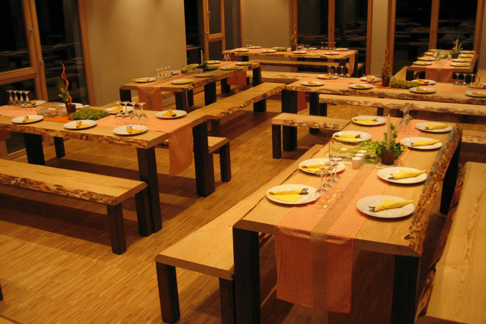Morgens erwartet Sie ein reichhaltiges Frühstücksbuffet und abends verwöhnt man Sie im großen Speise- und Aufenthaltsraum mit einem leckeren 3-Gang-Wahlmenü. Zum Verweilen oder zum Treffen mit Freunden laden die Tagesbar und die Loungeecke mit Hausbibliothek ein. In der hauseigenen Sauna mit Ruhebereich und grünem Außenbereich können Sie sich nach einer ausgedehnten Wanderung Entspannen und Erholen. Saunatücher und Bademäntel erhalten Sie gegen eine kleine Gebühr. Für die kleineren Gäste gibt es einen großen Kinderspielraum mit Klettergerüsten, Slackline, Tischtennisplatte, Boxsäcken, einer Boulderwand und vielem mehr.