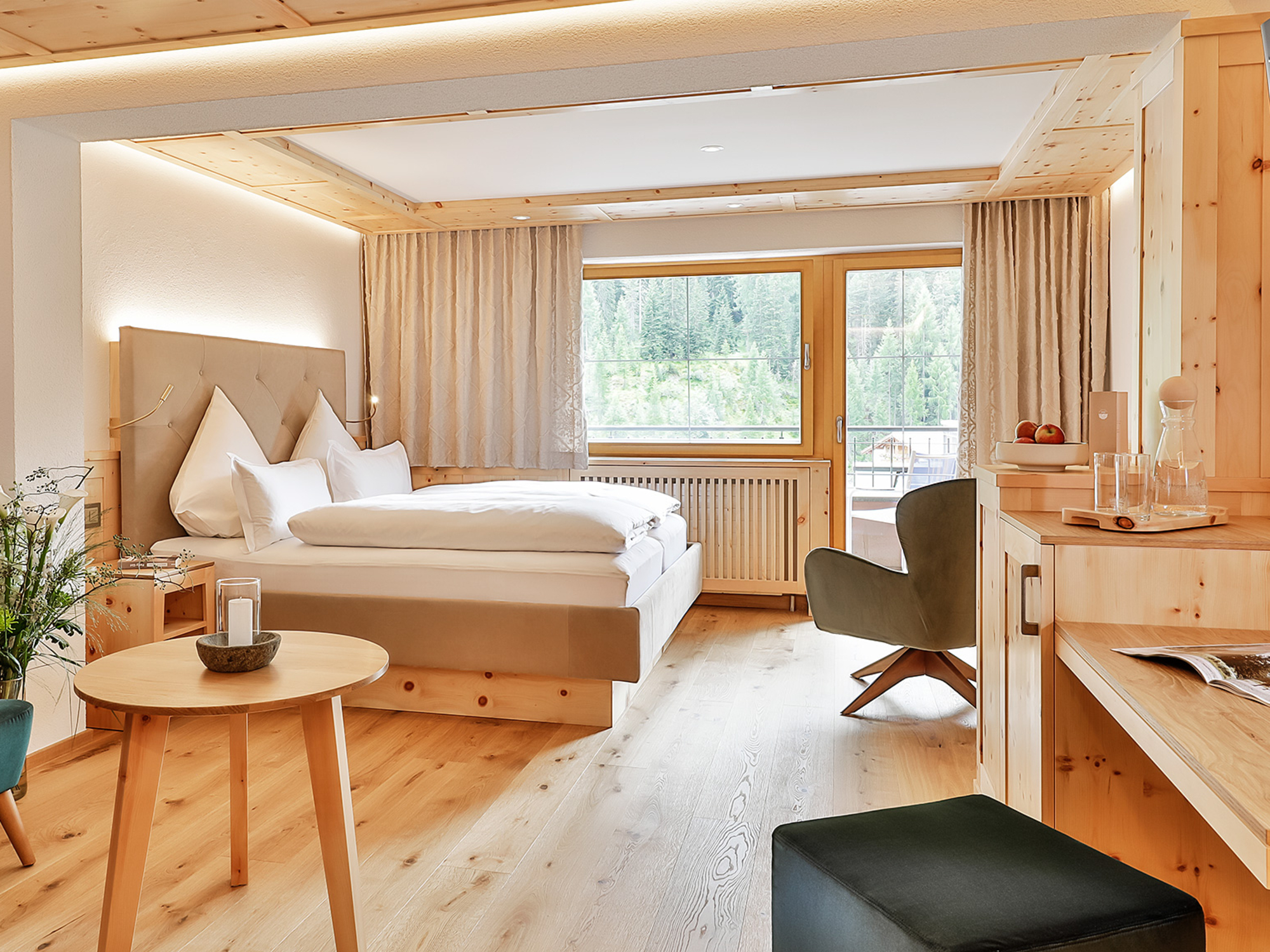 Liebevolle Details, stimmungsvolle Farben, kunstvoll verarbeitetes Holz – im ganzen Haus spüren Sie eine heimelige Wohlfühlatmosphäre, die zum Abschalten und Entspannen einlädt. Die unterschiedlichen Zimmerkategorien sind auf individuelle Wohnträume abgestimmt und lassen keine Wünsche offen.
