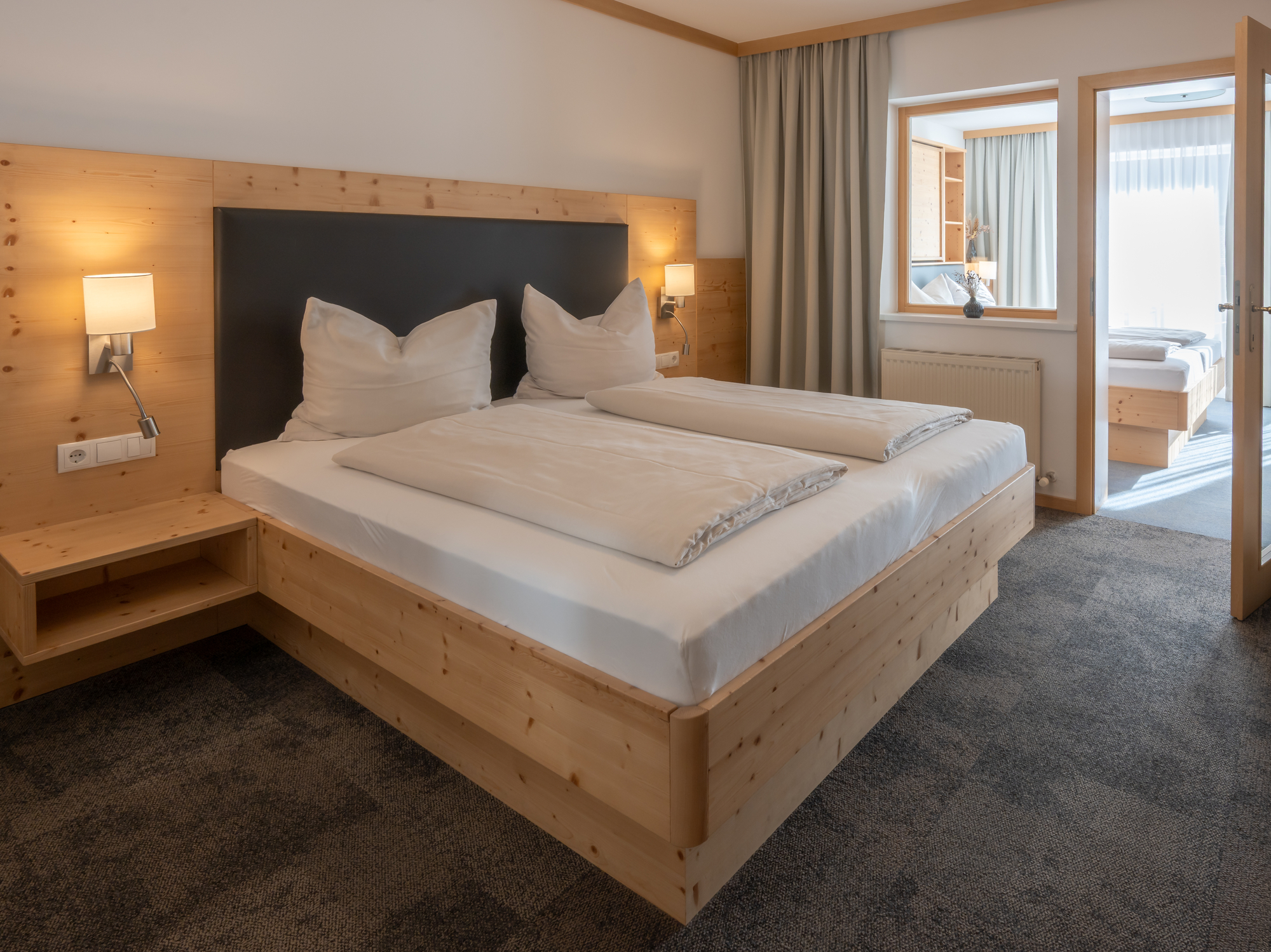 Die gemütlichen Doppelzimmer und großzügigen Familienzimmer sind geschmackvoll und modern ausgestattet, über einen Lift erreichbar und verfügen über Dusche/WC, Kabel-TV und Balkon mit Bergblick. Zudem gibt es W-Lan in den Zimmern und alle sind Nichtraucherzimmer. Die Gastgeber sind stolz auf die bekannt gute Küche, die vom Chef selbst geleitet wird. Hier wird großen Wert auf regionale und saisonale Produkte gelegt. Die Hausgäste bekommen am Morgen ein reichhaltiges Frühstücksbuffet, das keine Wünsche offen lässt und abends eine Menüauswahl mit Salatbuffet, wo für jeden das Richtige dabei ist. Im Sommer werden regelmäßig Grillabende veranstaltet. Reisegruppen sind ebenfalls herzlich willkommen.