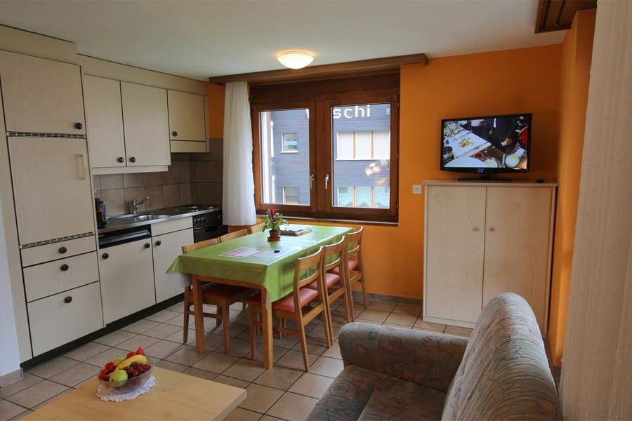 Es erwarten Sie gemütlich eingerichtete Wohnungen mit einem hohen Standard, die Ihnen während Ihren Urlaubstagen ein behagliches Zuhause mit allem Komfort bieten. Alle Wohnungen sind mit Bad/WC oder Dusche/WC, Föhn, Wohn-Essküche mit Filterkaffee- und Geschirrspülmaschine sowie Fondue Caquelon, Kabel-Fernsehen mit Info-Kanal Saas-Fee und Radio mit MC/CD-Player ausgestattet. Zudem können Sie in jeder Wohnung mit Ihrem PC kostenlos im Internet surfen - so lange Sie wollen. Dank Wireless bleiben Sie auch in den Ferien mit der Welt verbunden. Ihr Appartement erreichen Sie dabei ganz bequem, denn das Haus verfügt über einen Lift.