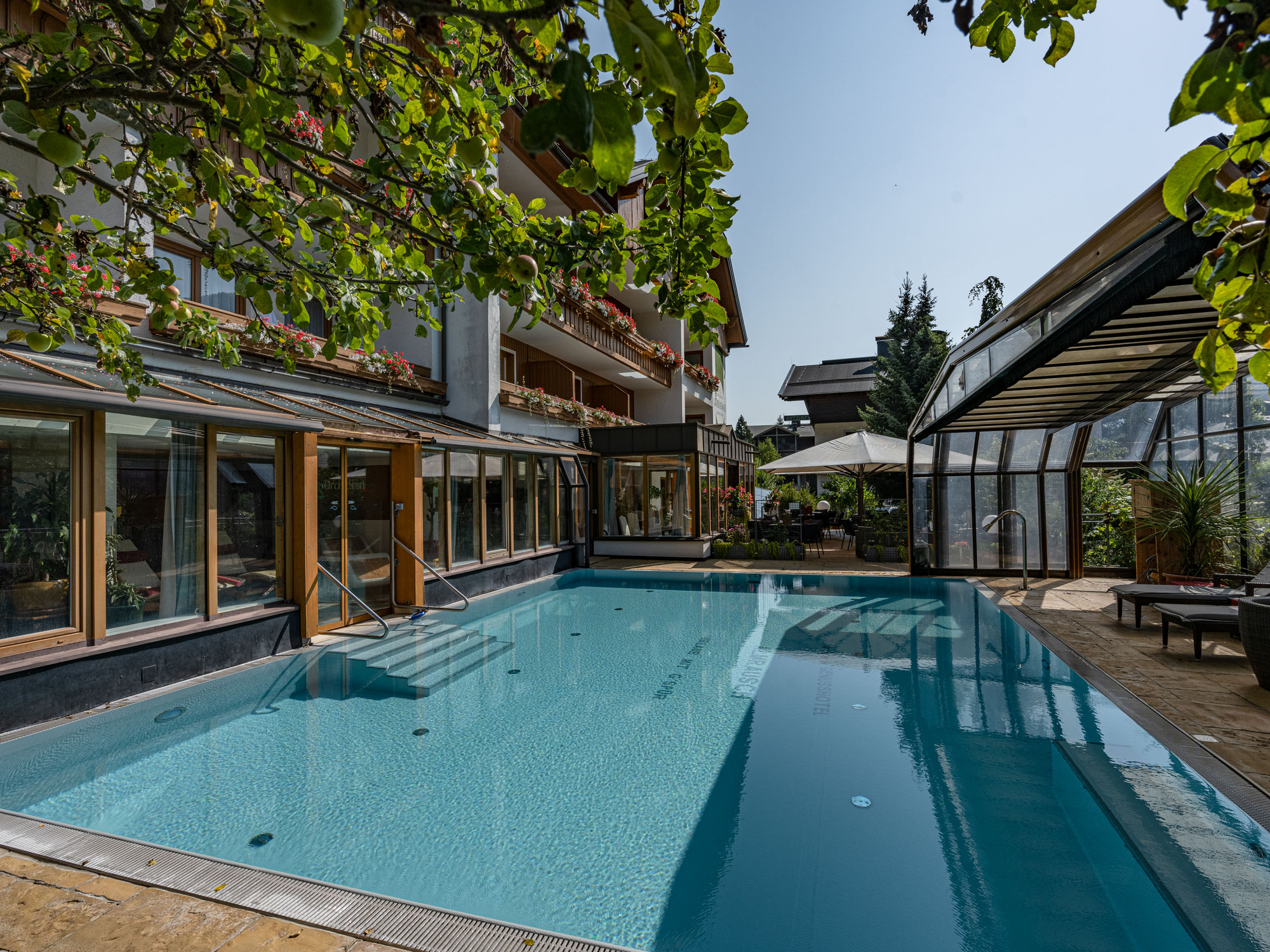 Runterkommen. Nicht nur von somanchem erklommenen Gipfel, sondern vor allem vom inneren Anspannungslevel. Deshalb nehmen Sie in den gemütlichen Wellnessliegen Platz und genießen Sie den sanften, wohltuenden Druck, während Sie, von der Sonne verwöhnt, den Blick durch die großen Panoramafenster über die Nockberge schweifen lassen. Genießen Sie zwischen den Wellnessbehandlungen und Saunagängen Erfrischungen an der Tee-, Saft- und Obstbar in Ihrem Wellnessurlaub in Bad Kleinkirchheim! Spannung und Entspannung im Genusshotel Almrausch Ruheraum "Raum der Natur": Panorama-Ruheraum mit direktem Pool-Einstieg Ruheraum "Nockstadl": Im Saunabereich finden Sie unseren neuen Ruheraum mit gemütlichen Betten und Edelsteinen aus der Region + weltweit (Ruheraum ab 16 Jahren) NEU: Ruheraum "Vier Jahreszeiten": im Saunabereich finden Sie einen kleinen, kuscheligen Ruheraum mit Eindrücken zu den 4-vielfältigen Jahreszeiten Frühling, Sommer, Herbst und Winter. Dazu eine Trinkwasser-Quelle für alle Saunageher (Ruheraum ab 16 Jahren) Erfrischungsmeile: frisches Kirchheimer Quellwasser vom Trinkbrunnen und aromatische Tees von Julius Meinl Unser Außenpool mit Schiebedach ist täglich von 07.00 bis 19.30 Uhr geöffnet & wird durch Fernwärme aus Bad Kleinkirchheim auf mindestens 29°C beheizt.