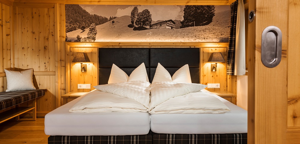 Hier trifft alpiner Charme auf stilvolle Gemütlichkeit! Die modern ausgestatteten Zimmer sorgen für einen erholsamen Schlaf und einen entspannten Start in den Tag. Zur Auswahl stehen geräumige Doppelzimmer (teils mit Zirbelkiefernholz), Suiten und Familienzimmer. Alle Zimmer verfügen über einen Balkon oder einer Terrasse mit spektakulärer Aussicht auf die umliegende Bergwelt.