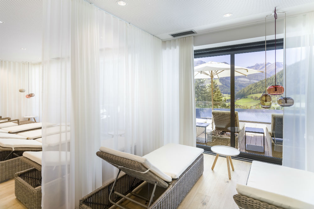 Der SPA- und Wellnessbereich bietet pure Erholung, ideal nach einem aktiven Urlaubstag. Vier verschiedene Saunen (Infrarotsauna, Bio-Sauna, Finnische Sauna, Dampfbad) bieten für jeden Gast die richtige Variation. Weiterhin gibt es einen Pool sowie ein Jacuzzi mit Panoramablick. Für die kleinen Gäste gibt es einen eigenen Schwimmbereich. Abgerundet wird der SPA-Bereich durch einen stimmungsvollen Ruheraum sowie einer Lounge. Auf Wunsch sind verschiedene Massagen und Beauty-Treatments zubuchbar. In den Sommermonaten entspannt man sich zusätzlich im luxuriösen Whirlpool oder im Infinity Pool mit atemberaubenden Blick auf das Tal und die umliegende Bergwelt. Dem Außenbereich angeschlossen ist eine großzügige Liegefläche, Sonnenstühle sind vorhanden.