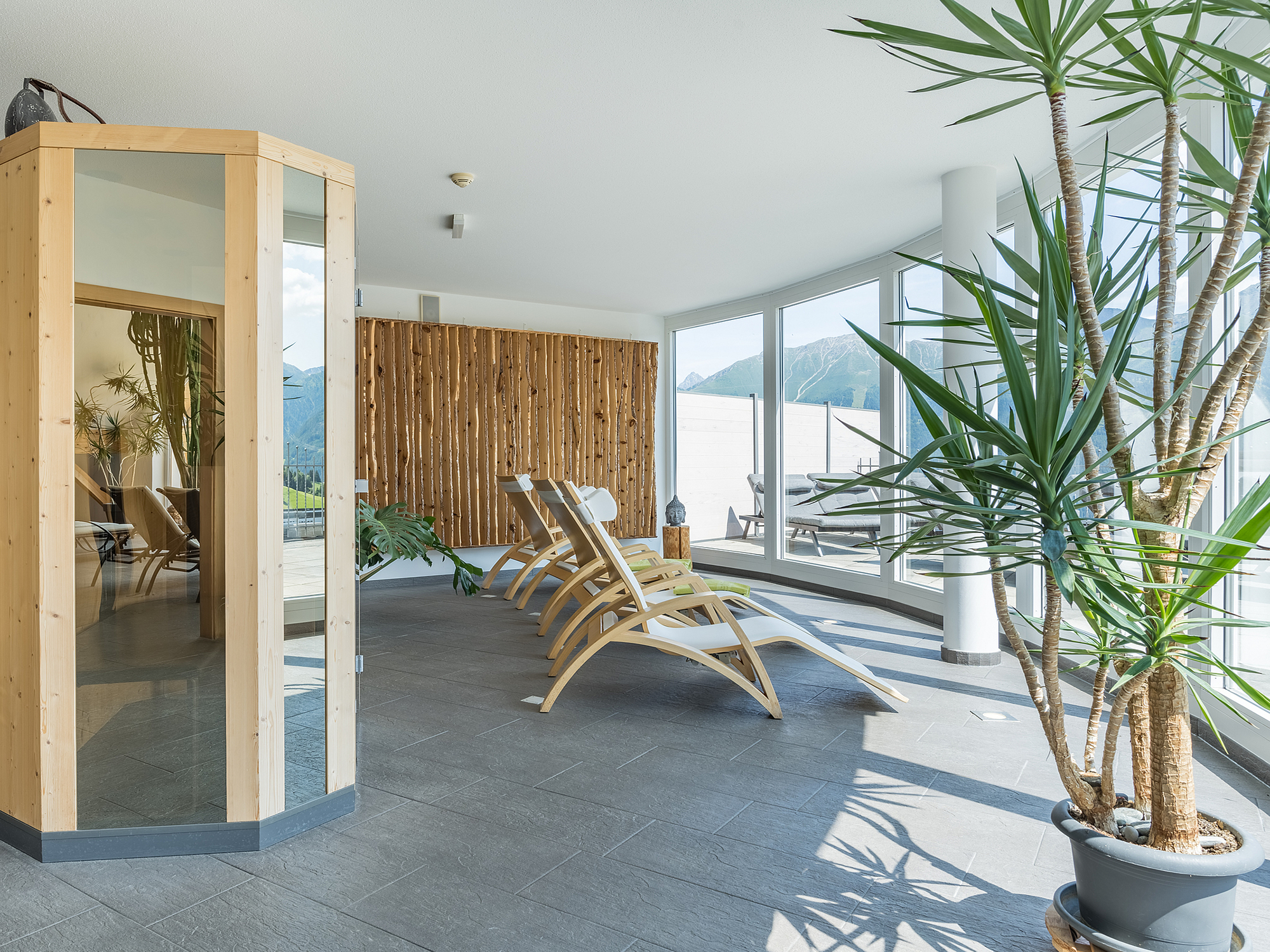 Zum Abschalten oder am Ende eines erlebnisreichen Tages lädt die Wellness-Bergoase des Hotel Natürlich ein. Hier stehen Ihnen klassiche Saunen, Dampfbad, Infrarotkabine, Kneippbecken, Massageraum und zum Träumen Wärmeliegen, ein Ruheraum sowie eine Dachterrasse mit unbeschreiblichem Ausblick auf das umliegende Bergmassiv zur Verfügung.