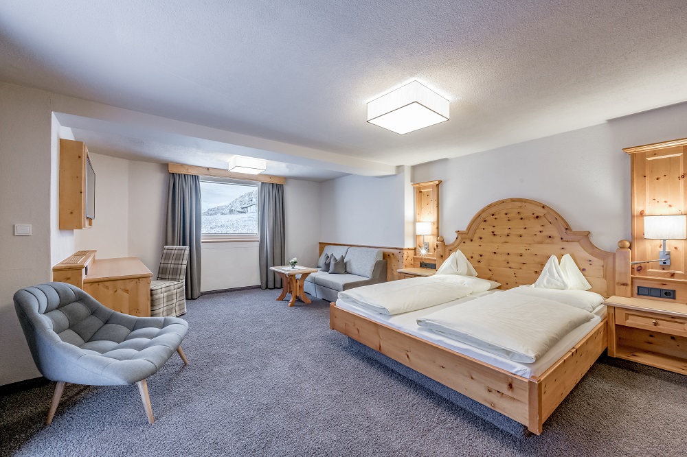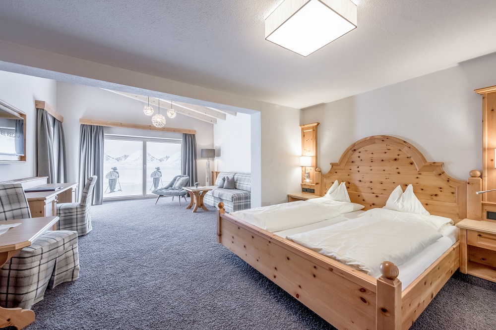 Zum Wohlfühlen laden die traditionellen Zimmer im Hotel Regina ein. Viel Holz und warme Farben sorgen hier für alpenländische Gemütlichkeit. Die Familienzimmer und Appartements sind besonders für Familien mit Kindern geeignet, da sie genügend Platz für bis zu 5 Personen bieten. Die Zimmer sind alle mit Bad oder Dusche, teilweise separates WC, Föhn, Safe, Sat-TV, Internetanschluss, Radio und Telefon ausgestattet. Die Regina-Suite bietet mit einem heimeligen Kachelofen und einer Whirlwanne noch etwas mehr Wohnkomfort. Den herrlichen Panoramablick auf die faszinierende Berglandschaft können Sie vom Balkon genießen, über den der Großteil der Zimmer verfügt.