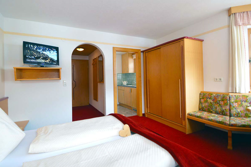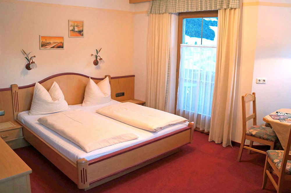 Platz für 2 bis 4 Personen bieten die gemütlichen Appartements, die zwischen 30 und 50 m² groß sind. Damit es Ihnen im Urlaub an nichts fehlt, sind diese mit Wohnküche und einer Ausziehcouch, Küchenblock, Sitzecke, WLAN, Sat-TV und eigenem Balkon ausgestattet. Ein Brötchenservice am Morgen wird Ihnen auf Wunsch angeboten. Mit Dusche/WC, Balkon, WLAN und Sat-TV sind die geräumigen Doppelzimmer ausgestattet. Im freundlichen Frühstücksraum starten Sie mit einem reichhaltigen Buffet in den Tag. Im kleinen Wellnessbereich bieten Ihnen Sauna, Dampfbad und Ruheraum die wohlverdiente Entspannung nach einem aktiven Tag in den Bergen. Weiterhin stehen Ihnen die gemütliche Kaminstube, Liegewiese, Kinderspielplatz, Sonnenterrasse und ein hauseigener Parkplatz zur Verfügung. Endreinigung Appartement Sommer ca. € 60,--
