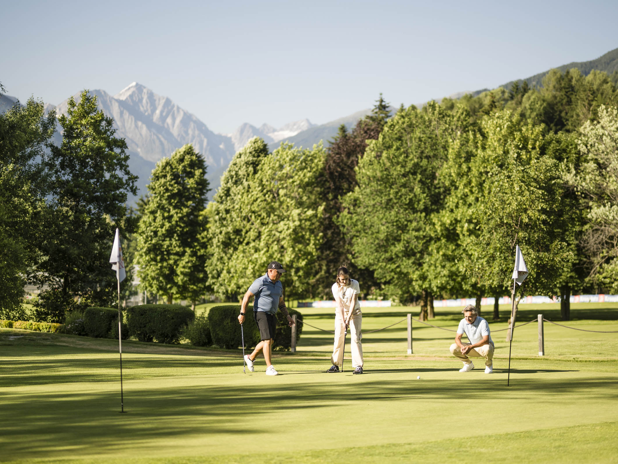 ... Golfsport wird vor dem atemberaubenden Dolomitenpanorama zur schönsten Sportart der Welt. Die hoteleigene 3-Loch-Anlage des Mirabell Golf Club liegt direkt gegenüber dem Hotel und bietet Nervenkitzel pur, den Fokus auf den Ball und den perfekten Abschlag gerichtet. Immer wieder aufs Neue ein Kunstwerk und Symbiose aus Kraft und Präzision.