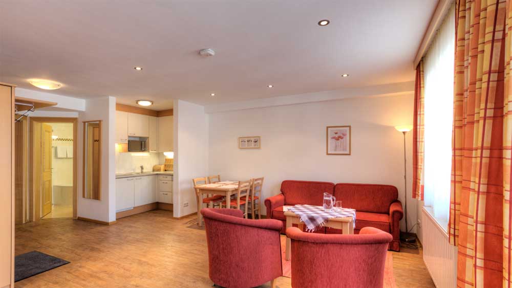Gepflegte, heimelige Zimmer, die alle mit Dusche oder Bad, WC, Föhn, Radio, Sat-TV und Telefon ausgestattet sind, laden in der Penson Walkerbach zum Wohlfühlen ein. Einen atemberaubenden Panoramablick auf die herrliche Bergwelt können Sie vom Balkon genießen, über den ein Großteil der Zimmer verfügt. Selbstverständlich steht Ihnen auch ein kostenloser W-Lan Internetzugang zur Verfügung. Für Familien mit Kindern eignen sich besonders die großzügigen Appartements, die genügend Platz für 2-6 Personen bieten. Damit es Ihnen im Urlaub an nichts fehlt sind diese mit ein oder zwei Schlafzimmern, Wohnzimmer mit ausziehbarer Schlafcouch, Essecke, komplett ausgestatteter Küche, Badezimmer mit Dusche und Eckbadewanne, Föhn und zwei Waschbecken, getrenntem WC, Sat-TV, Telefon und Zimmersafe ausgestattet.