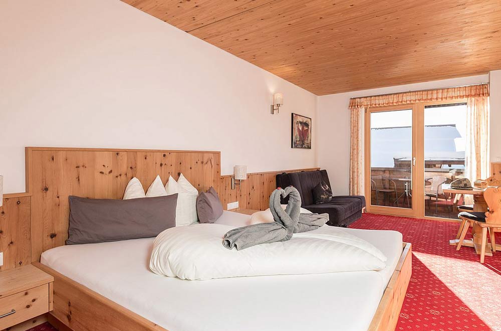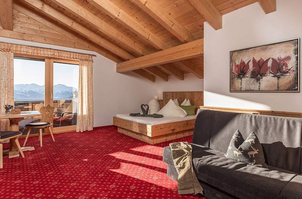 Umgeben von einer herrlichen Bergkulisse entspannen Sie auf 1.900 m Seehöhe. Auf der Sonnenterrasse oder im Wohlfühlbereich mit Ruheraum, Sauna, Infrarotkabine und Saunarium können Sie so richtig die Seele baumeln lassen.