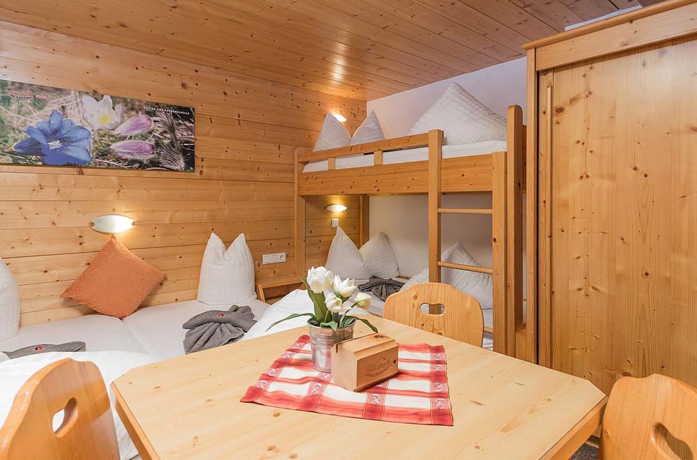 Lassen Sie Ihre Seele baumeln und genießen Sie Ihre schönsten Tage im Jahr auf der Stalderhütte. Sie haben sich einen unvergesslichen Urlaub verdient! Die Ausstattung der Vier- und Sechsbettzimmer besteht aus je einem Doppelbett und Stockbetten. NEU sind 3 Luxus-Komfort-Doppelzimmer (mit gesundem ZIRBENHOLZ, Balkon, DU/WC, TV, Föhn, Kosmetikspiegel), 3 Komfort-Doppelzimmer (mit Balkon, TV, DU/WC, Föhn, Kosmetikspiegel) und 1 Familien-Komfort-Doppelzimmer mit Verbindungstür. Alle Zimmer verfügen über Dusche und WC sowie teilweise Balkon. Zu Ihrem weiteren Komfort finden Sie in der Hütte Aufenthaltsräume, Nichtraucherecke, Fernsehstube, Skikeller und Schuhraum mit Heizung. Auch genügend Parkplätze sind vorhanden. Zur Halbpension gehört ein zünftiges und reichhaltiges Frühstücksbuffet sowie das Abendessen mit Salatbuffet und Dessert. Im Sommer findet einmal wöchentlich ein Grillabend statt. Vollpension bieten die Stalderhütte ihren Gästen gerne auf Anfrage.