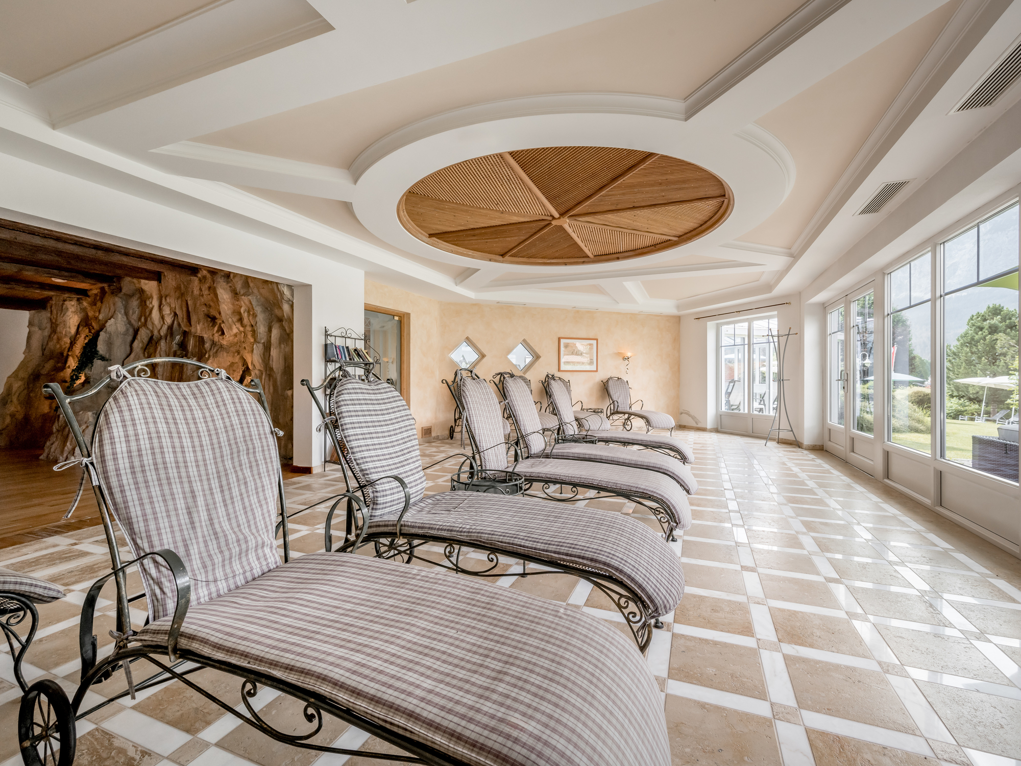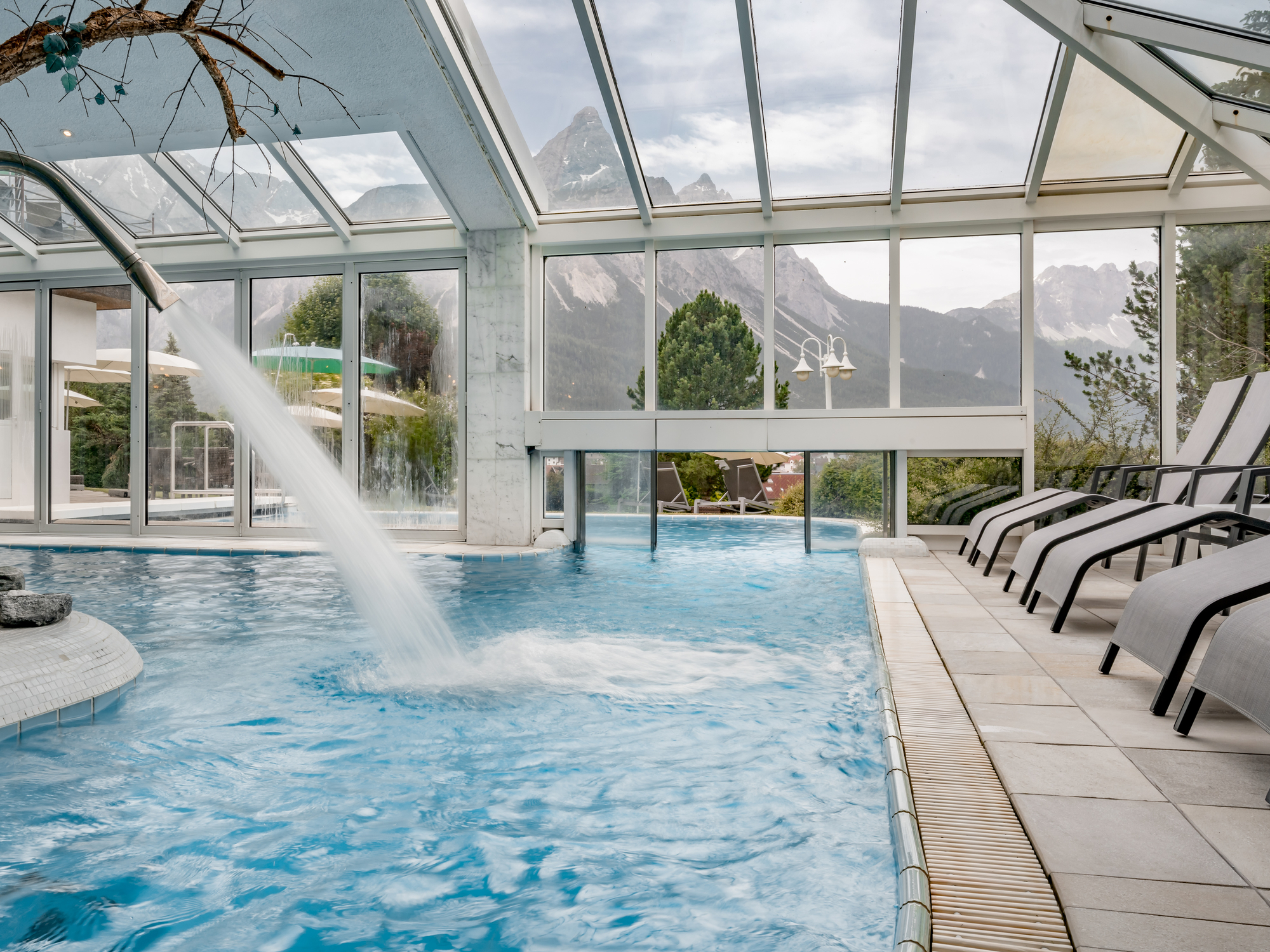 Im Hotel Alpenhof können Sie den Alltag in der großzügigen Bade-, Erholungs- und Wellnesslandschaft mit der besonderen Wohlfühlatmosphäre vergessen. In der Badelandschaft mit dem 30°C warmen Panorama-Erlebnishallenbad, dem Outdoor Pool, dem Jet-Whirlpool, dem Massagepool, dem Kneipptretbecken und der großen Sonnenterrasse erleben Sie jede Menge Schwimmspaß. Bringen Sie Ihren Kreislauf in der Saunwelt in Schwung. Für Ihr Wohlbefinden sorgen hier Finnische Sauna, Dampfbad, Schwitzstube, Felsengrotte mit Eisflocken, Kräuter- und Solegrotte sowie ein Ruheraum mit Fengshui-Wasserbetten. Fachkundige und erfahrene Hände verwöhnen Sie gerne mit wohltuenden Massagen und Beautybehandlungen.