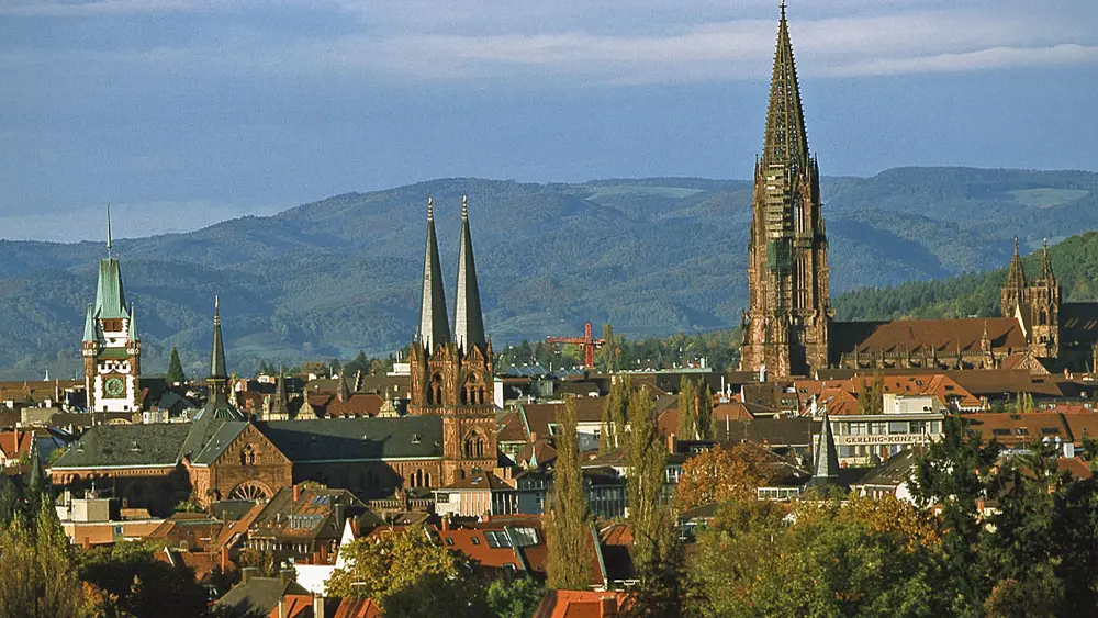 Freiburg im Breisgau, gilt als ?Tor zum Schwarzwald? und liegt im Oberrheinischen Tiefland. Bekannt ist die Stadt für ihr besonders mildes Klima, ihrem Wahrzeichen, dem Bächle, und ihrer historischen Altstadt mit dem Münsterplatz und Münster.