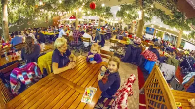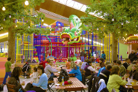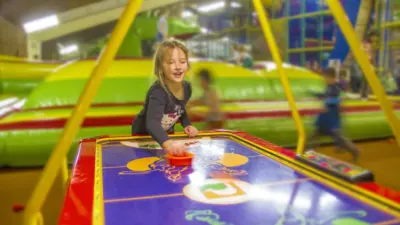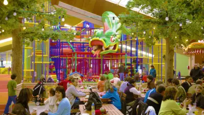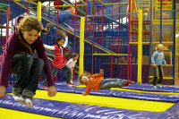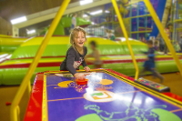 Man kann auch Karussell, Elektroauto oder Polizeimotorrad fahren und auf einem riesigen Trampolin hüpfen. So mancher jung gebliebene Erwachsene würde da am liebsten selbst mitmachen. Während die Kinder begeistert und vollauf beschäftigt sind, trinken die Eltern Kaffee, spielen Billard, Tischfußball oder Airhockey.