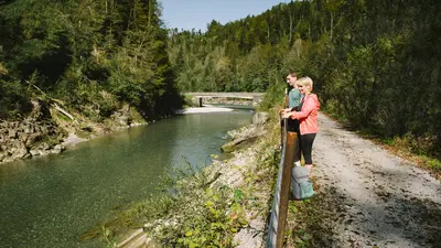 Aber natürlich eignen sich viele Wege nahe der Bregenzer Ach auch zum Wandern oder Walken. Je nach Fähigkeiten der Wanderer kann man durchaus mehrere Stunden am Fluss entlang gehen und die herrliche Natur mit ihrer Bergwelt genießen. Unterkünfte auf Park- und Campingplätzen sind ausreichend vorhanden.
