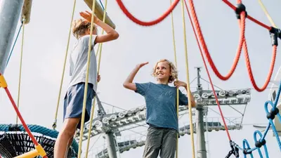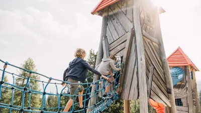 Die größeren Kinder freuen sich über den Kletterdrachen, das Geisterschloss, Luftschaukeln, Vogelnester, den Geisterturm, die Wasserspiele und den Geistersee.