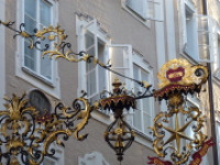 Zunftschild des Großgasthofs Sternbräu in der Getreidegasse 34-36/ © Snotty, via Wikimedia CommonsFrüher war das Geschäftsbild der Getreidegasse durch viele Traditionsbetriebe wie Modehäuser, Schuhmoden oder Bäckereien geprägt. Heute sind davon nur noch einzelne Geschäfte übrig geblieben, darunter die Biber Apotheke, das Spielwarengeschäft Neumüller und die Spirituosenhandlung Sporer. Dafür siedelten sich nach und nach viele große Marken und Ketten in der Straße an.