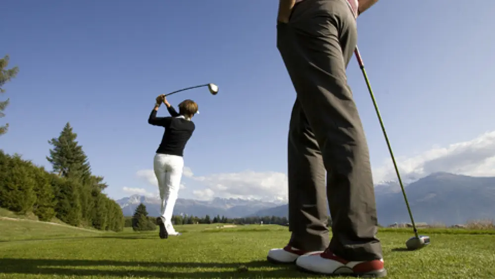 Große Tradition haben die Swiss Open, die der Golf-Club Crans-sur-Sierre einmal jährlich organisiert. Das erste Turnier fand vor über 70 Jahren statt. Seit 1983 ist es ein European Masters und somit eine der Stationen der PGA European Tour. Jedes Jahr Anfang September messen sich die Profis auf dem von Severiano Balles- teros geplanten 18- Loch-Platz. Abschlagen kann man aber auch auf dem Neun-Loch- Parcours von Jack Nick- laus. Dazu kommen zwei weitere Neun- Loch-Plätze, die für alle offen sind: der "Golf-Club de Noas" in Cher- mignon-d’en-Bas und der "Pitch & Putt"-Rasen bei den Super-Crans-Häusern, der sich gut für Anfänger und zur Verbesserung der Technik eignet.