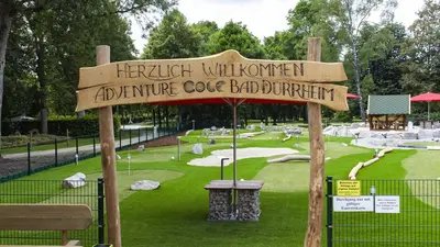 Die Kombination aus natürlichem Gelände und den aus speziellem Kunstrasen bestehenden Greens fühlt sich an, als wäre man auf einem "echten" Golfplatz! Vorkenntnisse sind hierzu übrigens nicht erforderlich. Spiel und Spaß sind somit garantiert! Ein Kiosk mit einem schönen Biergarten lädt zum Erholen ein.