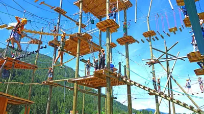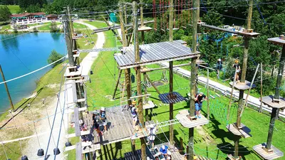 Der Hochseilgarten in Flachau liegt direkt am Ufer des Winkler Badesees und bietet Einsteigern und Fortgeschrittenen Nervenkitzel und Adrenalinkicks.