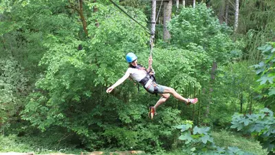 Für alle Teilnehmer ab 1,20 Meter, die das Gefühl von Freiheit und Geschwindigkeit lieben, ist der Flying Fox Parcours genau das Richtige. Hier gleitest du, sicher an einem Stahlseil befestigt, in rasantem Tempo von Plattform zu Plattform durch den Wald. Die Seilrutschen sind unterschiedlich lang und hoch gespannt, sodass sowohl Einsteiger als auch geübte Abenteurer auf ihre Kosten kommen. Mal schwebt man knapp über dem Waldboden, mal saust man in schwindelerregender Höhe durch die Baumwipfel.
