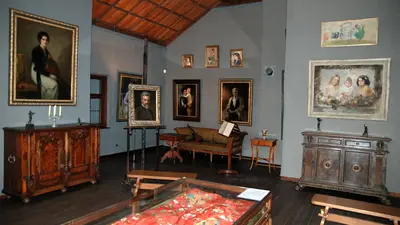 Die vier Räume des Dorfmuseums in der Kaulbachvilla zeigen ein früheres Büro, historische Werkzeuge der Landwirtschaft, Trachten, alte Schlafgemächer und eine Babywiege.