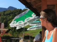 Von der Sonnenterrasse hat man einen traumhaften Blick über die Inzeller Berge und jeden Sonntag gibt es Live-Musik.