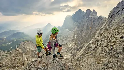 Das Dachsteinmassiv ist ein Paradies für Bergsteiger und Kletterer - nicht umsonst ist die Region Österreichs Klettersteiggebiet Nr. 1. Vor 170 Jahren wurde hier der erste Klettersteig der Alpen angelegt. Heute gibt es viele verschiedene Klettersteige und Touren auf der Südseite des Dachsteins und können von Ramsau aus in Angriff genommen werden.