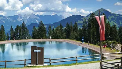 Ein Highlight auf dem Markbachjoch ist der Skulpturenpark am Speicherteich. Die 8er Gondelbahn “Markbachjochbahn” bringt Wanderer in 8 Minuten von Niederau auf die Bergstation. Von dort aus führt ein halbstündiger Fußweg zum Speicherteich, wo sich ein Skulpturenpark befindet. Der Fußweg selbst ist nicht anstrengend und kann problemlos bewältigt werden.