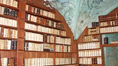 Diese Bibliothek überstand fünf Jahrhunderte mit Kriegen und Bränden, man kann außerdem noch das Mobiliar aus dem 15. Jahrhundert bewundern.
