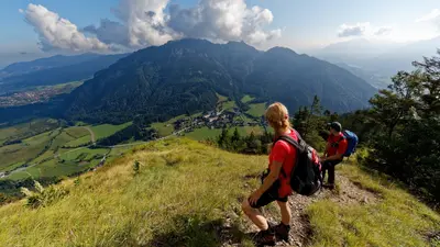 Von hier aus ergibt sich ein hervorragender Ausblick auf Ettal und sein bekanntes Kloster Ettal. Auf nun sanfter ansteigendem Weg entlang des Grats wird die 1.720 m hohe Ziegelspitze und nach einer knappen weiteren Stunde die Notkarspitze erreicht.