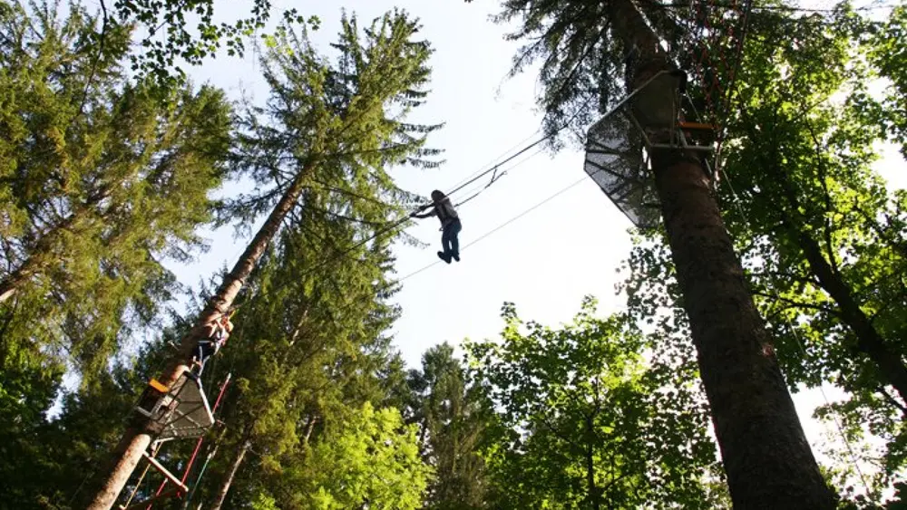 Die sechs Parcours des Hochseilkletterparks bieten insgesamt mehr als 100 Elemente, die Parcours haben unterschiedliche Schwierigkeitsgrade. So gibt es beispielsweise einen Kinder-Seniorenparcours und einen Könnerparcours, einige der Elemente sind auch extra für Gäste mit Handicap konzipiert. Besonders aufregend ist der Flying-Fox-Parcours, der mit gleich fünf Seilbahnen aufwarten kann.