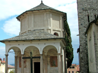 {{gallery_1}}Die Pfarrkirche verfügt über einen ruhigen und abgeschirmten Garten, den man ebenfalls ansehen kann. Im Frühling und Sommer blühen hier zahlreiche Blumen. Der Garten ist von einem Laubengang mit Rundbögen und weiteren Fresken umgeben. Dieser wurde im 17. Jahrhundert erbaut und gehört, zusammen mit dem Baptisterium und dem Rathaus, zu dem Komplex.